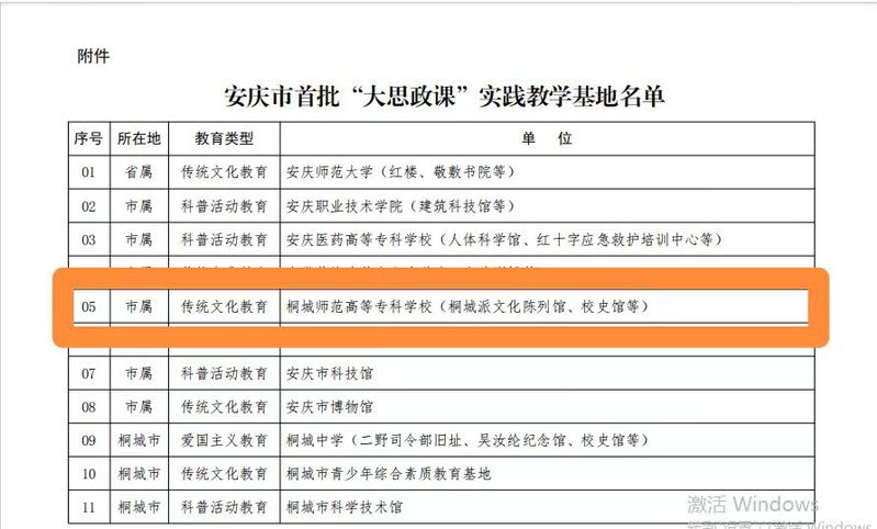 近日,中共安慶市委宣傳部、安慶市教育體育局印發通知(教體高〔2025〕87 號),命名33家單位為“’大思政課’實踐基地”,我校“桐城派文化陳列館”、“校史館”成功入選。