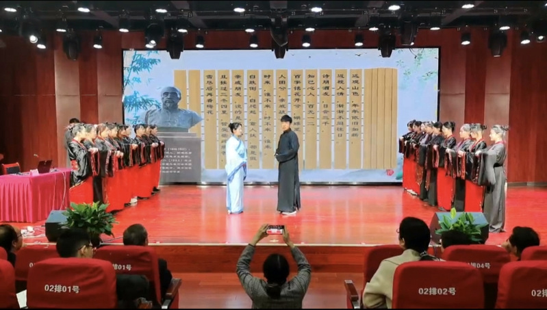 為深入貫徹習近平文化思想,推動中華優秀傳統文化創造性轉化、創新性發展,11月8日下午2:00,“習近平文化思想的桐城實踐”安徽省思政課程研討會在桐城師範高等專科學校音樂廳隆重舉行。受主辦方邀請,桐城文化愛好者協會精心改編桐城派後期大師吳汝綸先生名作《百字銘》,以新穎的形式、優美的吟誦、曲折的情節精彩亮相,為研討會注入青春活力,贏得現場嘉賓的一致好評。