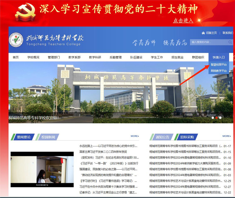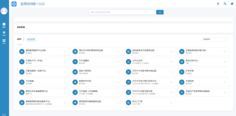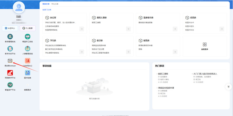 注意:用戶在登錄進入WebVPN後,隻能通過桐城師範高等專科學校內鏈接進行跳轉訪問,不支持直接輸入域名或在新瀏覽器中進行校內內網應用的訪問。