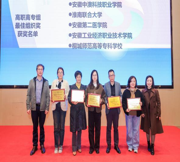 10月25日,以“星火燃夢·AI語新聲”為主題的2025年“訊飛杯”全國高校英語口語大賽安徽賽區總決賽在中國科學技術大學舉行,我校學子朱梓靚、王文靜同學憑借紮實的語言功底與出色的現場表現榮獲一等獎,圖書館榮獲“最佳組織獎”,朱梓靚、王文靜同學代表高職高專組發表獲獎感言並分享交流經驗,充分展現了我校學子的風采。