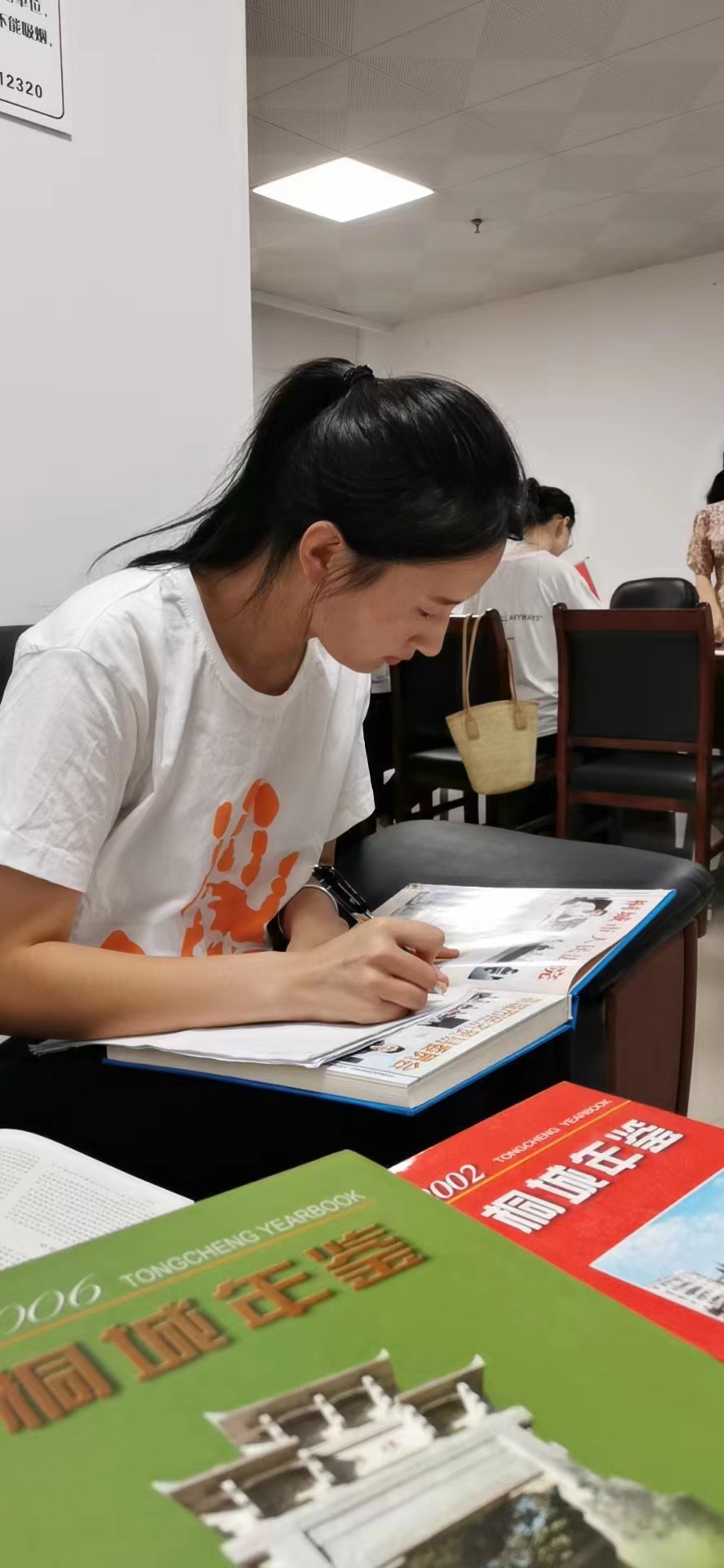 社會實踐團隊實地探訪的首站來到了桐城市檔案館和桐城市委黨史與地方誌研究室,陳文運主任熱情地接待了團隊一行,係統講解了桐城本地的革命曆史和主要的紅色革命遺跡,為隊員們上了一節生動有意義的黨史教育課,並提供了很多珍貴的圖書資料讓隊員們參閱學習,隊員們感受著革命歲月的艱難困苦、浸潤在一個個可歌可泣的革命故事中,相互討論心得,並拿出筆記本和手機做記錄,為後期的實地走訪做足了知識儲備。
