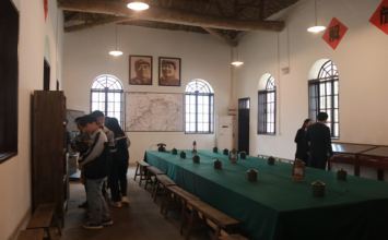進入大門,映入眼簾的是一張會議桌,解說員為實踐小組介紹了劉鄧大軍在這裏召開會議的故事,小組成員們了解到了“打過長江去,解放全中國”這句話的真正意義。