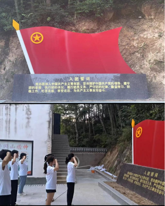 在紀念館內,麵向鮮豔的團旗,實踐小組成員在指導老師的見證下重溫入團誓詞:“我誌願加入中國共產主義青年團,堅決擁護中國共產黨的領導,遵守團的章程,執行團的決議,履行團員義務,嚴守團的紀律,勤奮學習,積極工作,吃苦在前,享受在後,為共產主義事業而奮鬥!”再次接受心靈的洗禮,用鏗鏘有力的宣誓莊嚴承諾踐行使命的信心和決心。