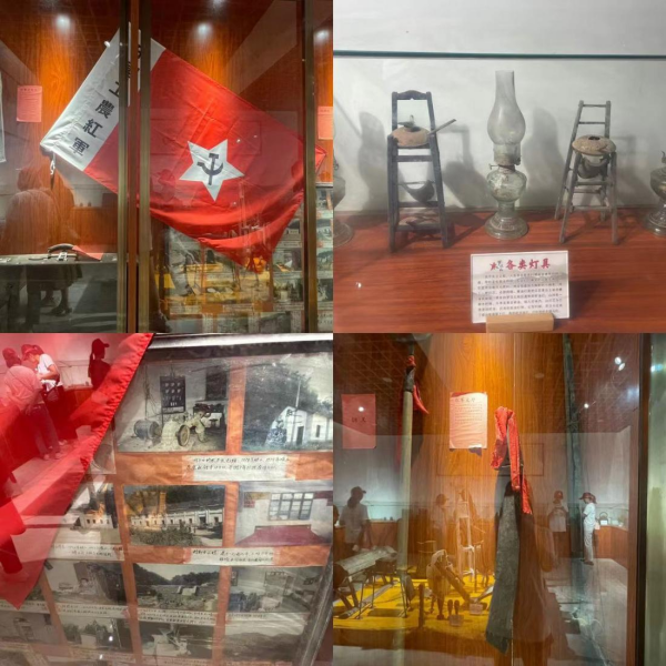 在隊長的帶領下,實踐小組成員參觀了羅漢尖革命根據地物品陳列館,在這裏可以看見革命戰士們使用的木質保溫飯盒、舊木瓢、梳妝台、武器,還有他們穿戴過的紅軍軍服、軍帽、草鞋等。