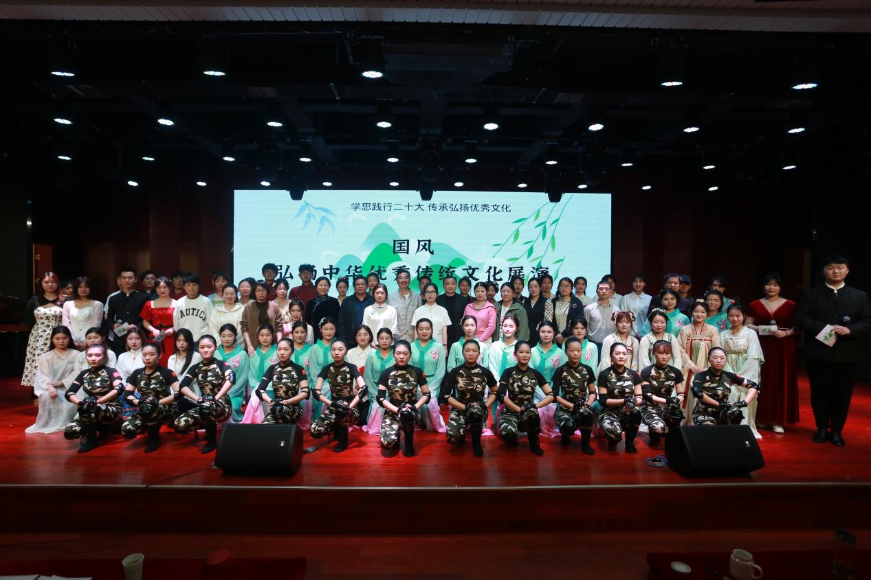 習近平總書記在黨的二十大報告中指出,堅持和發展馬克思主義,必須同中國具體實際相結合、同中華優秀傳統文化相結合。“國風”展演活動將中華優秀傳統文化融入文化藝術展演中,通過歌曲、舞蹈、相聲、朗誦等多種表現形式,讓廣大師生欣賞了一場精彩絕倫的傳統文化盛宴。既展示了我校學子的青春風采,增強了青年學生的文化自覺和文化自信,又展現了我校“文化浸潤”的特色教育成果,讓同學們更加深刻感受到中華優秀傳統文化中豐富的國學內涵和厚重的人文底蘊,營造了“人人愛國學、學國學、用國學”的校園文化育人氛圍。