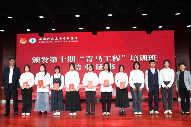 為充分發揮先進典型示範引領作用,激勵我校青年學生踔厲奮發、創先爭優、奮發有為,以優異成績向新中國成立75周年和建校120周年獻禮。桐城師範高等專科學校2024年“五四”表彰大會暨“青馬工程”培訓班結業儀式在校音樂廳隆重舉行。校黨委副書記、紀委書記張敏麗,黨委委員、副校長王宏偉,黨委委員、宣傳部部長伍建強出席大會。各黨總支書記,學生處、組織人事處、思政部負責人,各係學生工作分管主任,校團委全體成員,各係團總支書記,受表彰學生代表,第十期“青馬工程”培訓班學員代表共200餘人參加大會。大會由黨委委員、宣傳部部長伍建強主持。