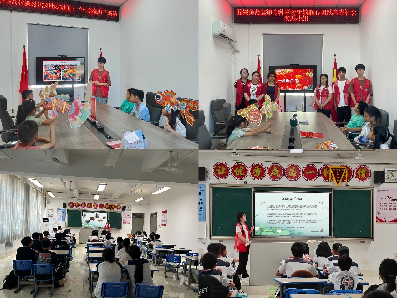 走進地方課堂,講好宣潤故事。88日,實踐團隊來到橋頭鋪村村委會,成員陳鑫麵向小學一、二年級的學生代表設計了以“一盞魚燈入我心”為主題的趣味美術課。首先,對魚燈模型的外形到結構特點的觀察;再進行科普、介紹;最後,通過臨摹,近距離感受魚燈工藝的精美以及美好的寓意。讓學生們從“這是什麽啊?”到“原來這就是魚燈!”的狀態轉變。89日,實踐團隊趕赴城南學校,成員陳睿麵向初中學生代表以“新四軍軍部舊址牆上塗抹的物質是什麽?”為課堂切入點,講述了新四軍的革命曆程,介紹了革命英雄人物,設置了紅色曆史文化答題,將黨史故事與宣紙製作相結合,開展了一堂以“宣紙製作”為主題的勞動實踐課,向學生展示製作原理和流程,帶領學生體驗了勞動的快樂,感受到中華文化的獨特魅力。