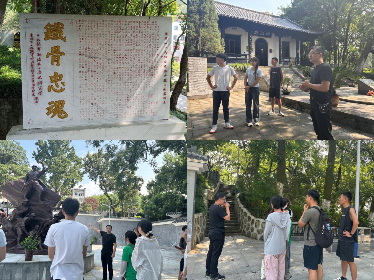 隨後,實踐團來到了抗日陣亡將士公墓紀念園。忠烈祠前的每一束鮮花、每一個鞠躬,都表達了對革命先烈們的無限景仰和緬懷之情。烈士紀念碑的矗立讓同學們不僅了解了國防建設的重要性,更深刻感受到了革命先烈們為保家衛國所付出的巨大犧牲和堅定信念,認識到今天的和平生活來之不易,必須倍加珍惜。