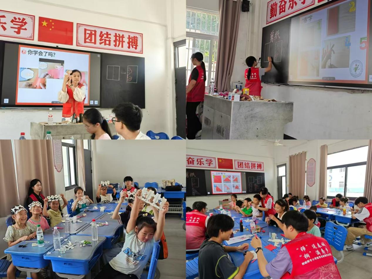 通過剪紙,傳承傳統技藝,弘揚本土文化。教學活動中團隊安排了剪紙傳承學習活動,學生們積極參與。從基本技巧講起,引導學生嚐試多樣剪紙風格與圖案,在團隊成員協助下,學生製作出精美剪紙作品。學生們的作品體現出細心和耐心,其創造力與文化傳承意識令人稱讚。