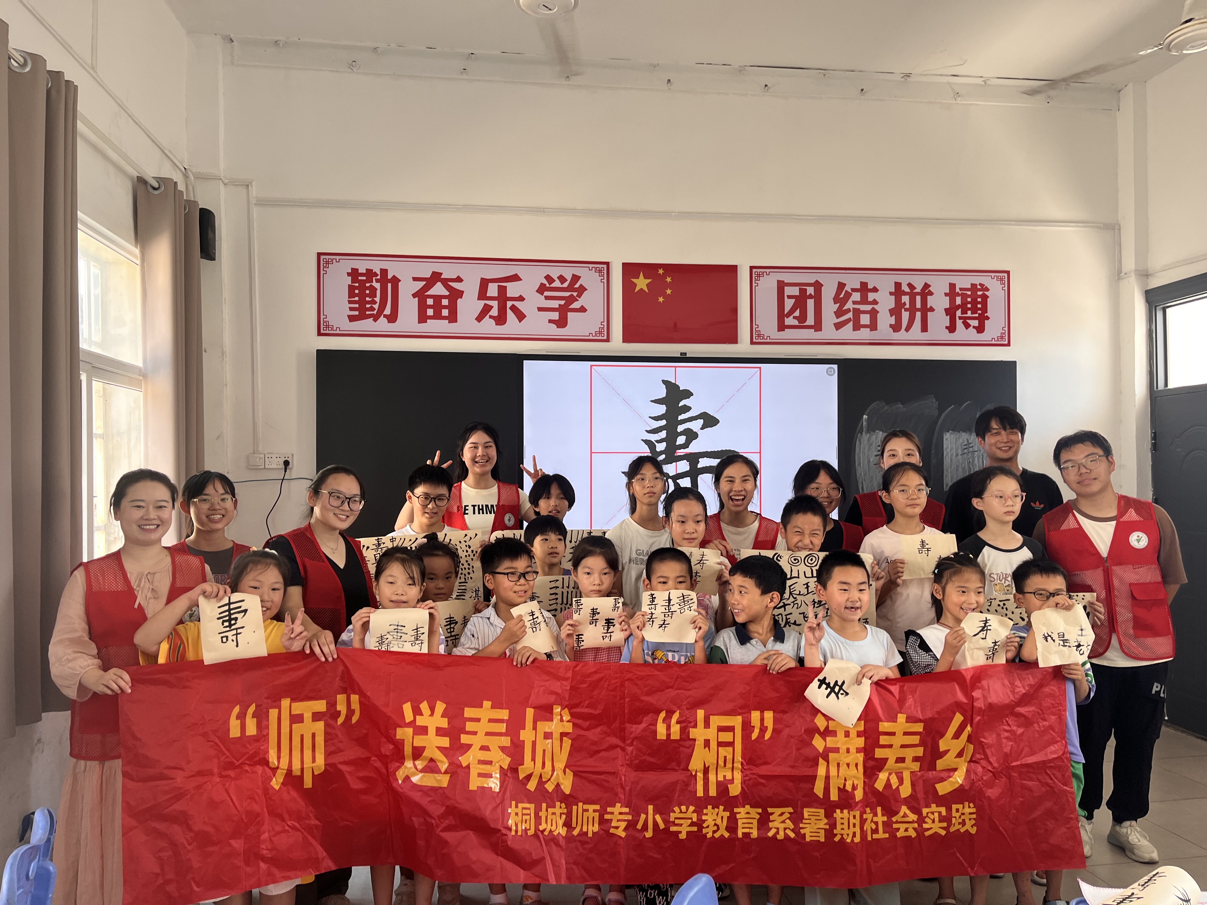 經過兩天的學習,學生們已了解了書法、國畫及剪紙的基礎知識,具備了一定的創作能力。在團隊成員的引導下,學生們開啟了以“我的家鄉”為主題的創作。創作過程中,关键词2看到了“春苗”們獨特的創造力。他們將書法與剪紙相結合,拚湊出家鄉的名字——壽春,接著又依據所學的國畫知識在卡紙上加以點綴,整個畫麵生動且充實。創作結束後,关键词2選取了幾位學生代表,讓他們談一談自己心中的“壽春”。不少學生都表示,壽縣曆史氣息濃鬱,民風淳樸,是他們成長成才的搖籃,是他們永遠眷戀的美麗家鄉。不知不覺,活動接近尾聲,團隊成員望著孩子們臉上的笑容,深感一切付出都極具價值。此次三下鄉活動,讓團隊深入了解了壽縣楚文化,體會到教育與傳承的愉悅。