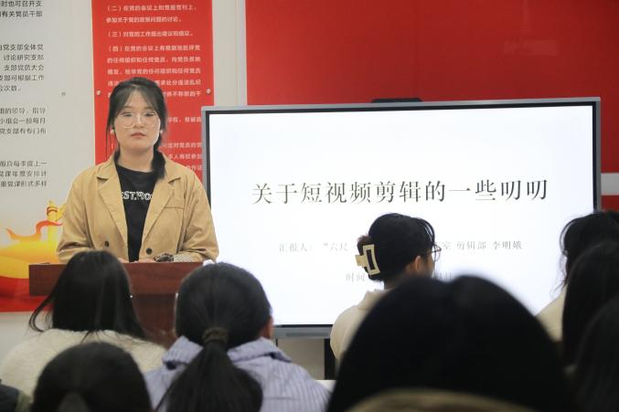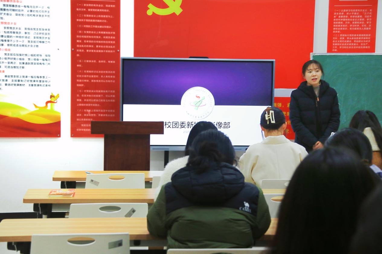 校團委新媒體影像部部長吳文榆給大家講述了如何尋找角度拍攝照片與視頻,細化劇本撰寫分工,如何加強抖音賬號運營等。隨後,影像部三位組長對於近期各組內發現的問題進行細化分析,並為未來如何做好組內工作做出規劃。