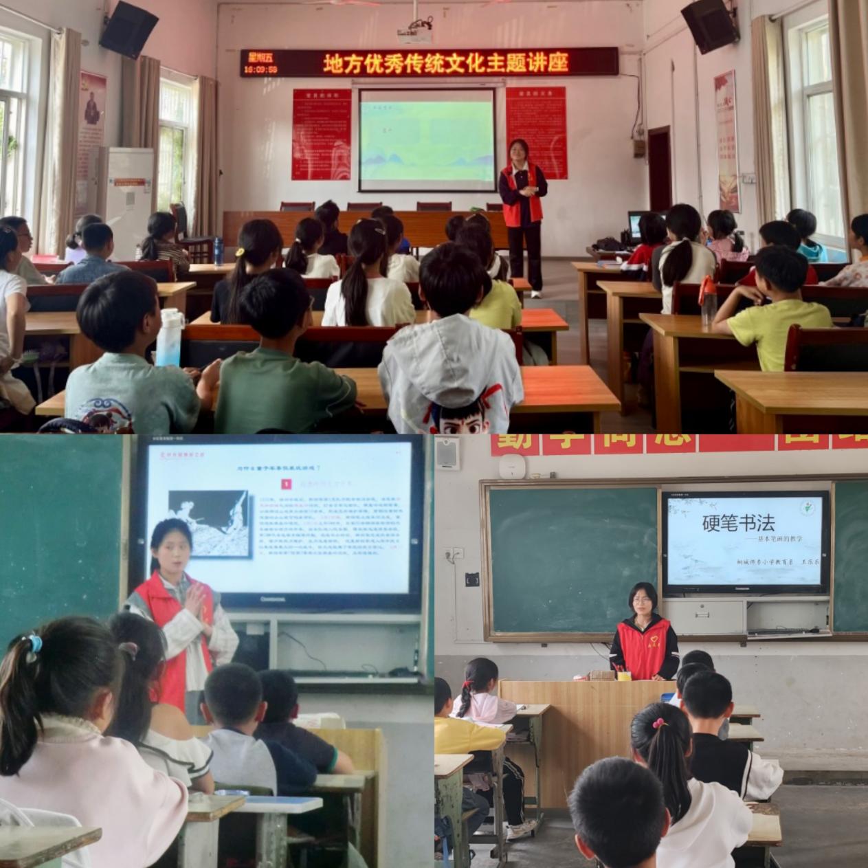 文化知識送進課堂。學生代表安洛生動有趣的給孩子們講解了桐城方言、桐城歌、六尺巷的故事,將桐城地方文化帶到小學課堂;王樂樂同學則通俗易懂給孩子們講授硬筆書法的知識;王雪同學上了一堂題為《穿越時空的英雄夢》的課,以英雄敘事為載體,將桐城曆史人物的真實經曆轉化為沉浸式故事,引導孩子在角色扮演中感受責任、勇氣與智慧的力量。