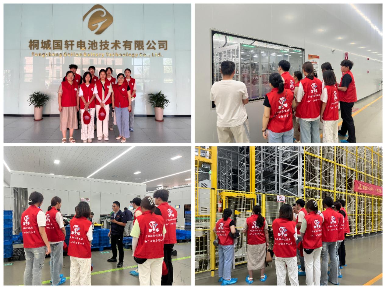 實踐團首站聚焦戰略性新興產業,走進桐城國軒新能源有限公司。在企業工作人員引導下深入新能源電池生產車間,觀察自動化生產線的運作流程——從正負極材料塗布、電芯卷繞,到電池組裝、性能檢測,全流程智能化設備精準高效運轉,嚴謹的質量管控體係貫穿始終。“以前隻在課本上學到‘智能製造’‘新能源’的理論概念,今天親眼看到龐大的生產設備、精密的操作工藝,才真正理解我國新能源產業的發展速度和技術實力。”實踐團團長章涵月同學感慨道。企業技術組組長還圍繞新能源行業發展趨勢、崗位需求與師生交流,強調“懂技術+會實操”的複合型人才是招聘核心,為學校相關專業建設提供重要參考。