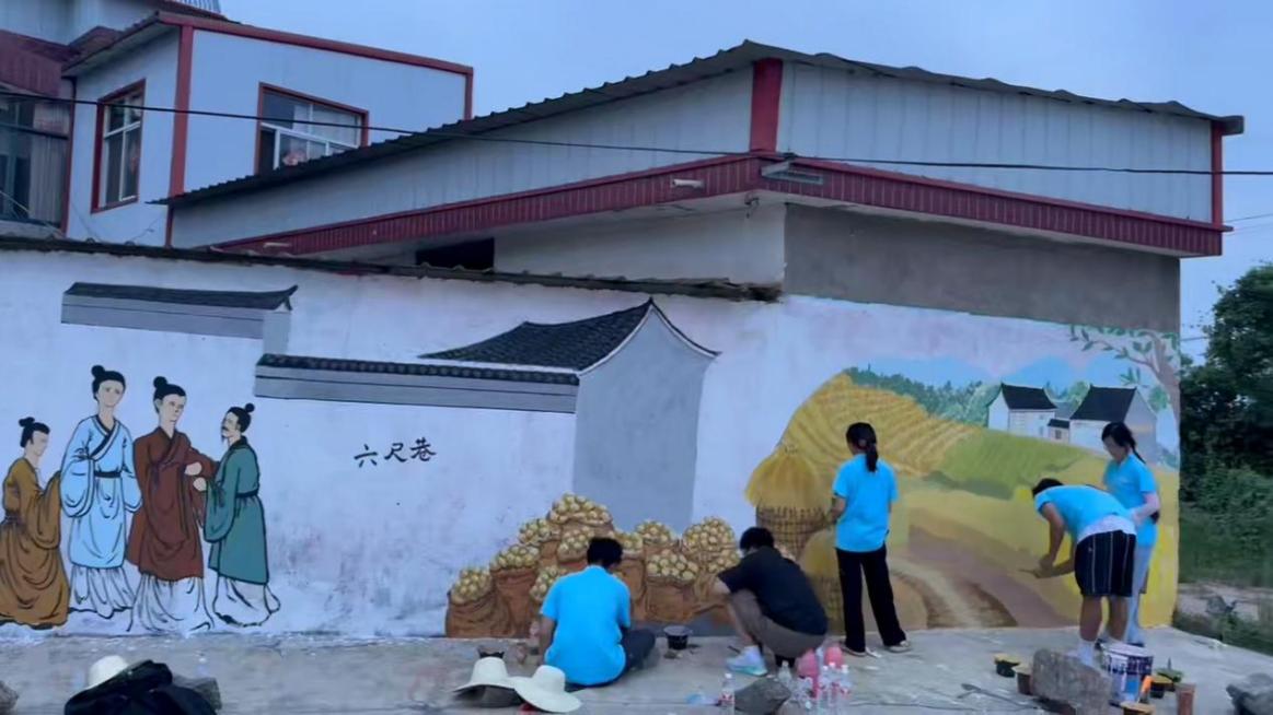8月4日,這支由3名教師、8名學生組成的實踐團進駐桐城市呂亭鎮合河村。“鄉村振興既要塑形,也要鑄魂”,指導老師餘冰引用二十大報告中的精神告訴隊員:“关键词2要用顏料為村莊‘卸妝上妝’。”