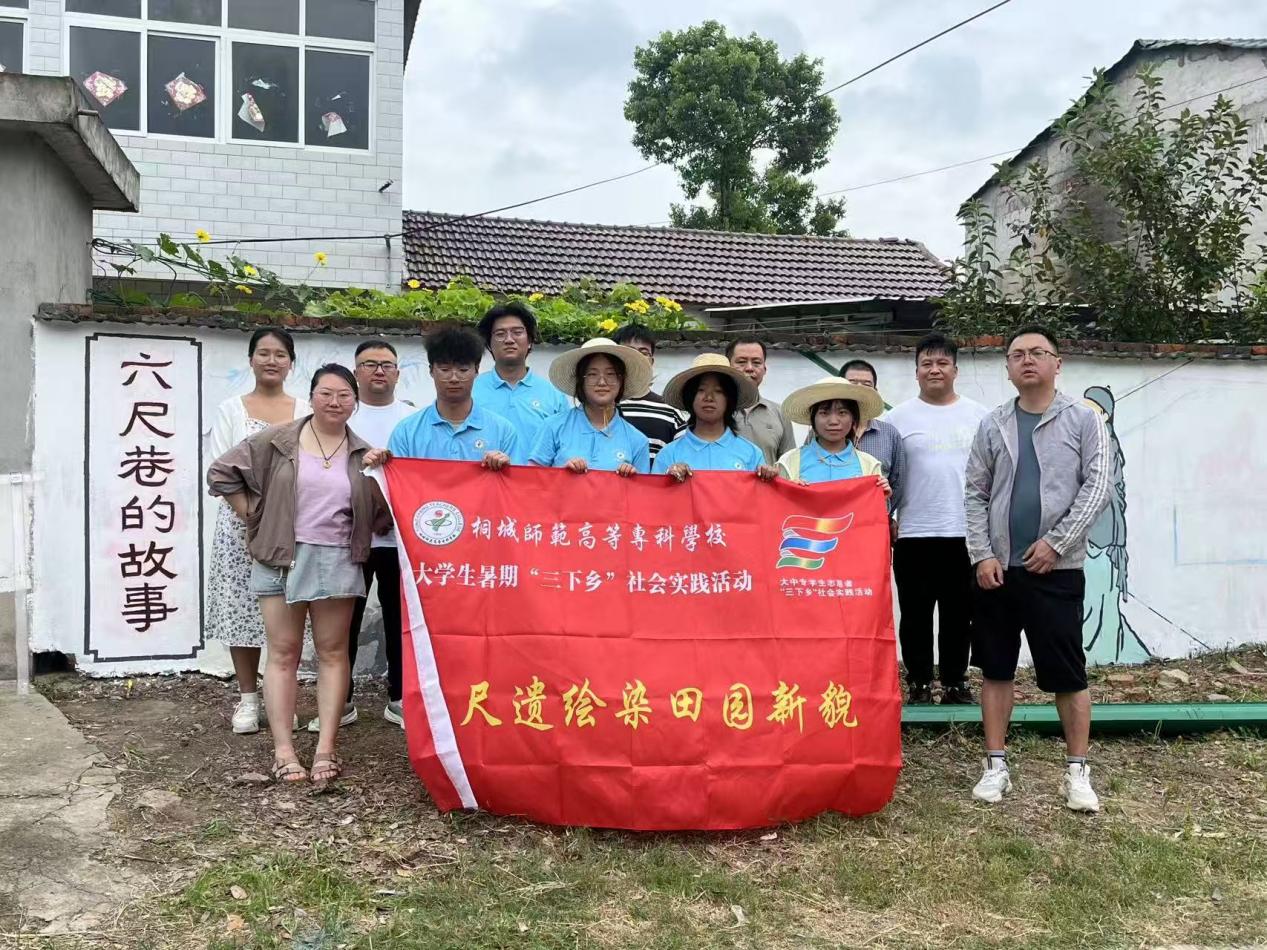 當鏟刀刮下最後一塊廣告的殘膠,露出斑駁的水泥底色時,來自桐城師範“六尺禮韻青春繪夢鄉村振興團”的隊員掌心已磨出水泡。在他們的身後,青色的稻浪簇擁著合河村低矮的農舍——這個僅有水稻與樹林的皖南村落,正迎來一場“牆麵革命”。