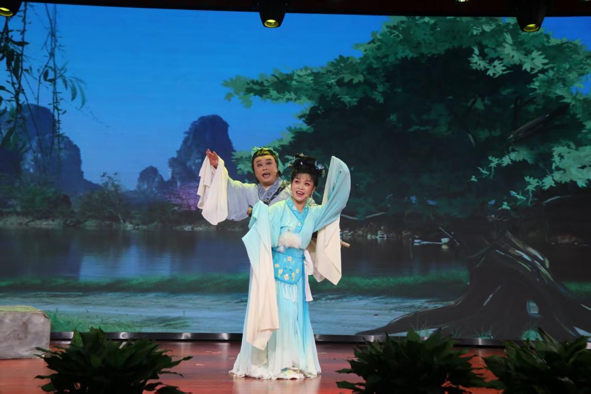 演出在悠揚婉轉的黃梅戲旋律中拉開帷幕。舞台上,演員們以精湛的演技、優美的唱腔和精美的服飾,生動演繹了“董永與七仙女”這段家喻戶曉的愛情傳說。演員們細膩的身段表演、富有感染力的對白,將人物性格與劇情衝突展現得淋漓盡致,現場觀眾仿佛置身於那個充滿神話色彩的世界。