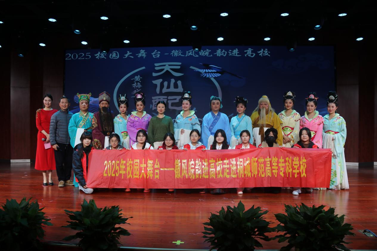 12月1日下午,由中共安徽省委宣傳部、安徽省教育廳、安徽省文化和旅遊廳聯合主辦,桐城師範高等專科學校承辦的“校園大舞台——徽風皖韻進高校”活動於我校音樂廳舉行。銅陵市藝術劇院有限公司的諸位藝術家們帶來了黃梅戲經典劇目《天仙配》,讓廣大師生近距離感受黃梅戲的獨特魅力和安徽文化的深厚底蘊。