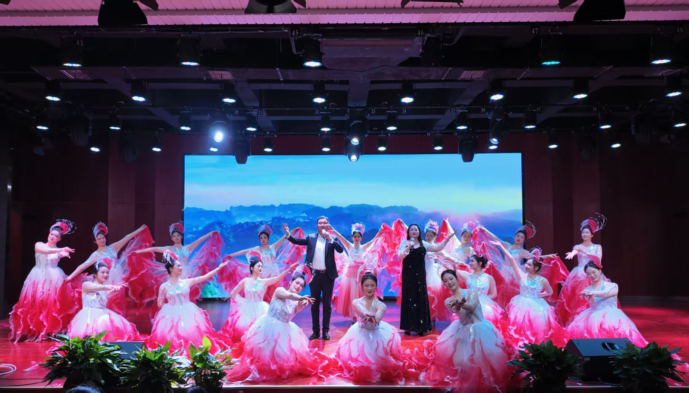 歌伴舞《萬疆》讓家國情懷在旋律與舞姿中緩緩流淌,老年大學與教職工舞蹈隊的《書香家園》,在毛筆下展現出別樣的藝術韻味。《吉祥飛舞》《踩春》《甜甜的糖球會》《光影交換》《輸了你贏了世界又如何》《芙蓉似錦滿城花》《春風十萬裏》等歌舞節目以明快的節奏,靈動的步伐、飽滿的熱情傳遞出吉祥如意的新年祝福。最終,匯演在《我愛你中國》的尾聲大合唱中落下帷幕。