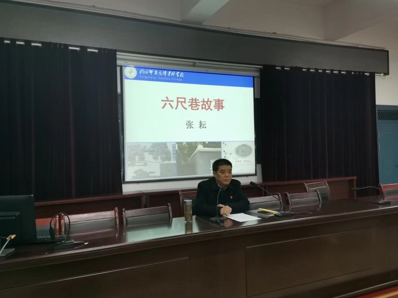 為貫徹“不忘初心、牢記使命”主題教育的工作部署,落實立德樹人這一根本任務, 11月25日下午,小學教育係在以智樓一樓報告廳開展了 “非物質文化遺產進課堂——六尺巷故事”的專題講座。小教係黨支部書記王斌,宣傳委員、國學社指導老師雷小麗,以及國學社成員代表160餘人聆聽了本次講座。