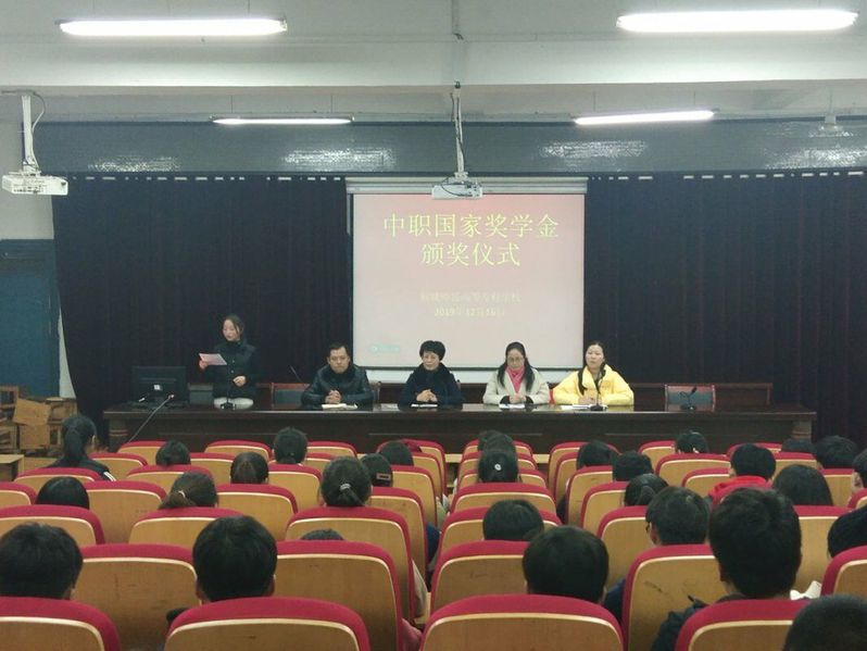1216日下午,我校在以智樓一樓報告廳隆重舉行了20182019學年中職國家獎學金頒獎儀式。副校長程玉梅出席頒獎儀式並講話。小學教育係、學生處相關負責人、獲獎學生以及小學全科學生代表參加了此次頒獎儀式。小學教育係副主任雷小麗主持頒獎儀式。
