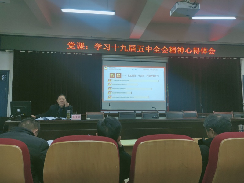 為了引領小學教育係全體黨員深入學習領會黨的十九屆五中全會的曆史性意義和全局性意義,全麵準確把握全會精神,12月16日下午,在以智樓一樓報告廳,校黨委委員、副校長吳登明給小學教育係全體黨員精準解讀了《中共中央關於製定國民經濟和社會發展第十四個五年規劃和二〇三五年遠景目標的建議》。小學教育係全體黨員參加了黨課。