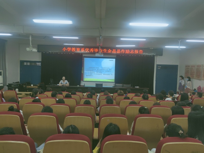 為了充分發揮優秀畢業生榜樣示範引領教育作用,激勵學生珍惜韶華、不負青春,心懷夢想、努力奮鬥,小學教育係於6月18日上午特別邀請了2017級小學教育專業優秀畢業生餘晶晶同學回母校在以智樓一樓報告廳為高專19、20級學生做了勵誌報告。