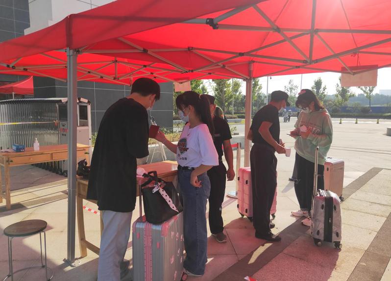 9月10日我係工作人員正在為17級全科學生進行測溫、檢查安康碼、疫苗接種碼、行程碼以及48小時候內核酸陰性檢測報告,幫助學生有序報到!