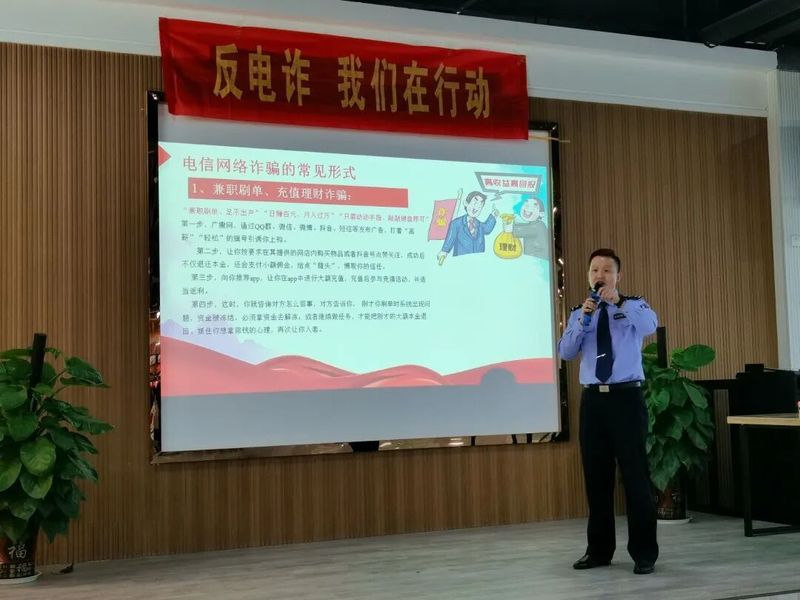 在講座中,趙警官用風趣幽默的語言揭露了網絡刷單、虛假鏈接短信詐騙、冒充客服詐騙、冒充網購客服退款等電信網絡新型違法犯罪的作案手段,向同學們宣傳了相關法律知識;同時,他還倡導師生下載“國家反詐中心”APP,把學到的反詐騙知識宣傳給周圍的人,讓更多人遠離詐騙。在本次活動中,我係雷主任帶領學生們認真聽講,講座最終在同學們熱烈的掌聲中圓滿結束。