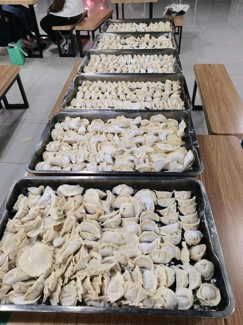 食堂後勤人員提前為學生們采購好餃皮、食材等材料,製作了餡料。活動開始了,同學們拿起一張餃子皮,用筷子挑了一點餡放進去,接著用手指沾了一點水抹在旁邊,讓它們粘合起來,最後再捏一點褶皺,一個餃子就大功告成了,包出來的餃子也是各式各樣。活動結束後,同學們吃著自己包的餃子,臉上都洋溢著興奮與自豪。