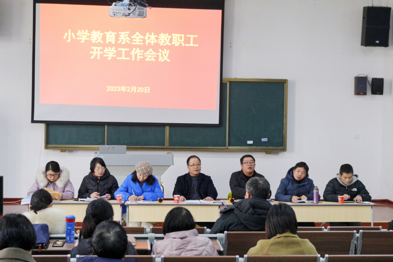 新元肇始,春和景明。2月20日下午三點,小學教育係在以智樓報告廳召開新學期開學會議。校黨委委員、宣傳部部長、辦公室主任伍建強到會指導。小教係全體教職工參會,係部負責人方皓文主持會議。