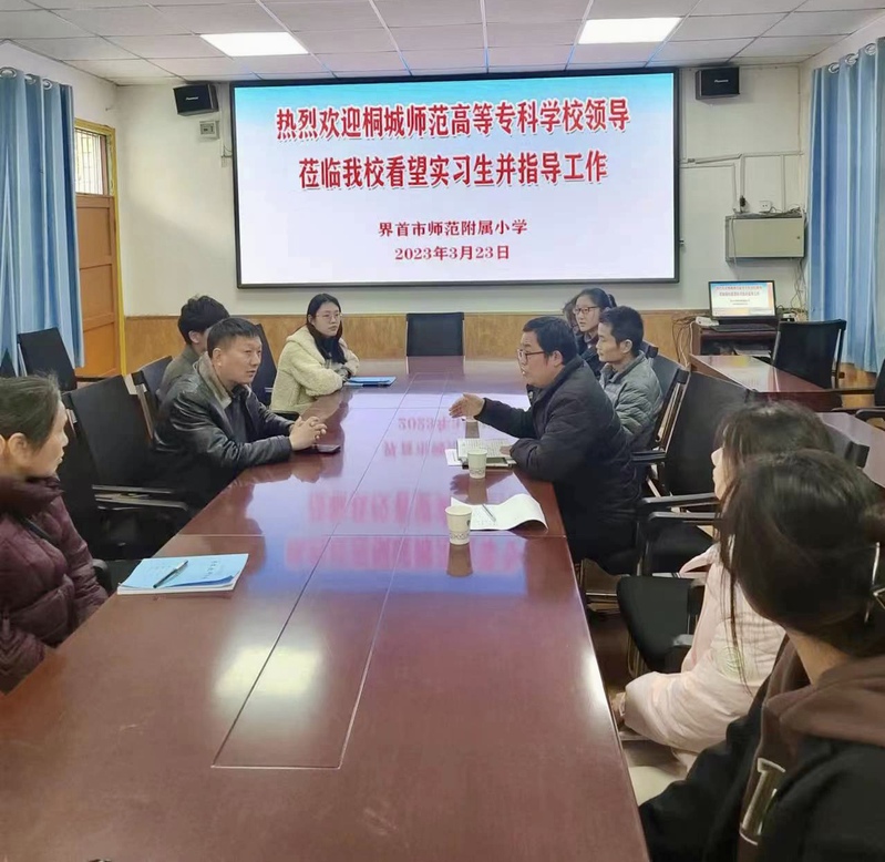 界首市師範附屬小學是一所擁有8000多人規模的小學,我校有6名畢業生在該校實習。與他們會談時,方主任表達了四層來意,首先看望學生了解學生的實習情況;其次感謝實習單位我校實習工作的大力支持,以及對實習生的關心和指導;再次了解我校學生在哪些方麵還需要改進,以便後期加強人才培養工作;最後希望兩校加強合作,以培養出“下得去,留得住、教得好、善研究”優秀鄉村教師。 實習單位的領導們在評價我校實習生時給予了充分的肯定,不怕吃苦、敢於擔當,有較強的教育教學能力,深受學生和家長的歡迎;同時也表示,希望能加強合作,從而引進更多優秀的畢業生。