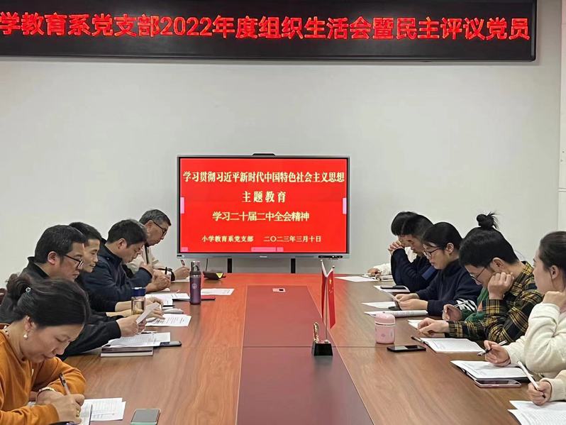 為深入學習習近平新時代中國特色社會主義思想,全麵貫徹落實黨的二十大精神,進一步推動支部黨建工作高質量發展。3月10日,小學教育係黨支部在黨員活動室召開2022年度組織生活會暨民主評議黨員大會。會議由係黨支部書記方皓文主持,學校黨委委員、宣傳部長、辦公室主任伍建強到會指導。