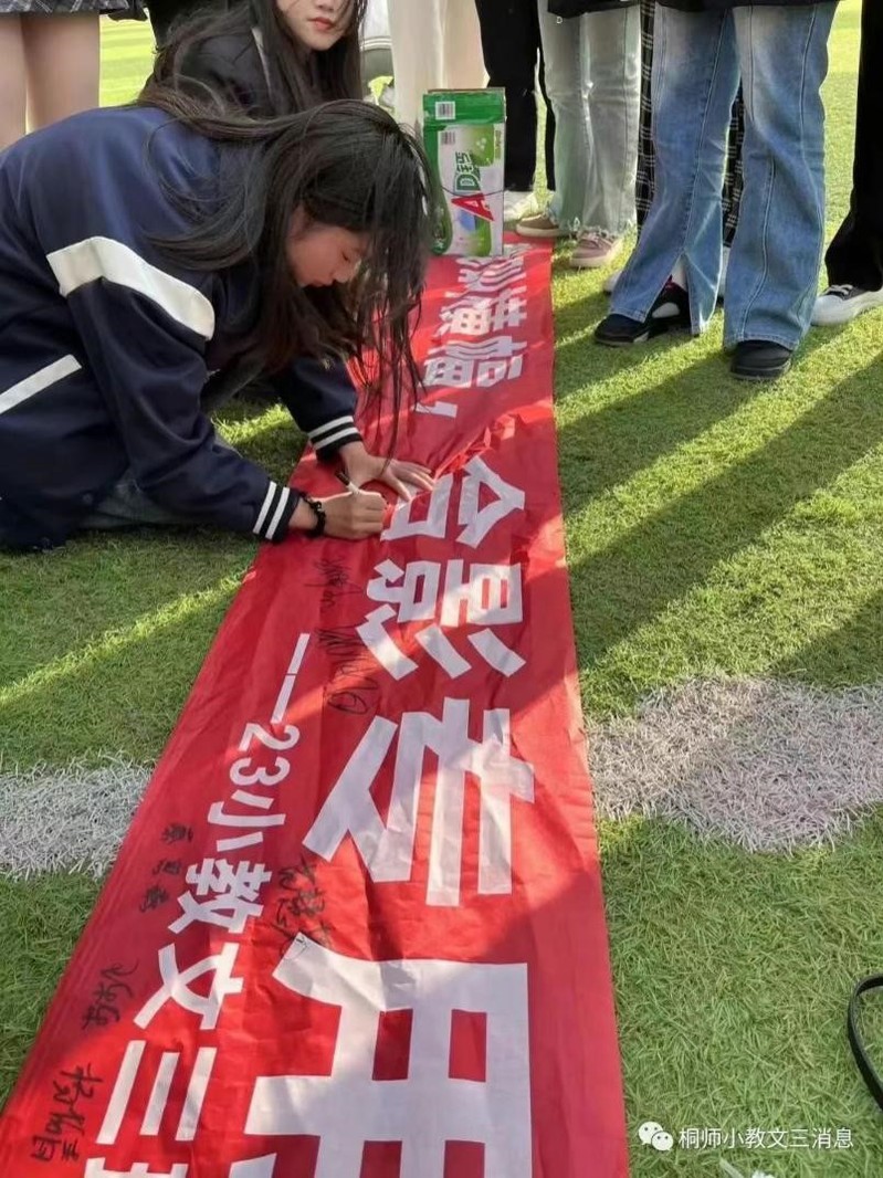 活動現場熱鬧非凡,讓人倍感振奮,班委將提前準備好的零食飲料依次分給同學們,大家通過做小遊戲、分享小零食、簽字橫幅等形式,為班級增添了一份快樂溫馨的氛圍。