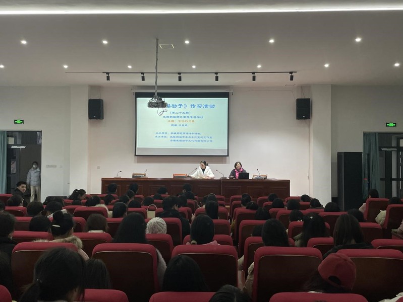 近日,安徽省級非物質文化遺產“裁襟勵子”項目代表性傳承人、安徽省巾幗建功標兵、安慶市作家協會副主席江覺遲應邀在我校進行了主題為“文化的力量”的講座,講座由小學教育係兼思政部副主任雷小麗主持。小學教育係和學前教育係本科畢業班等200餘名學生參與。
