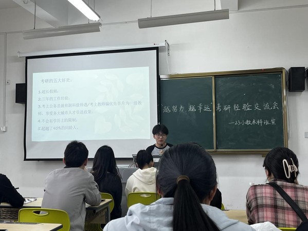本次活動以“越努力,越幸運”為主題,吸引了眾多學生前來參加。湯德紅從備考規劃、學習方法、心態調整、複習技巧等多個方麵進行了深入講解。在後續的問答互動環節中,備戰考研的學生們積極發問,現場氣氛熱烈,大家收獲頗豐。本次考研經驗分享交流會的成功舉辦,增強了同學們的信心,同時也為廣大學生提供了寶貴的備考指導和經驗借鑒,為更多學子築夢研究生插上了“經驗”的翅膀,希望來年我係考研有新突破新飛躍!
