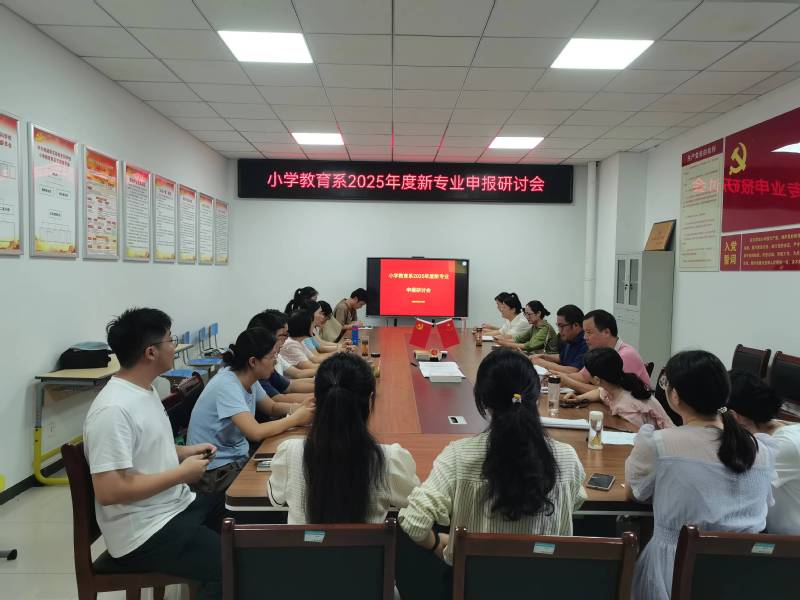 為推進小學教育係專業建設,拓展係部專業發展新方向,切實做好新專業申報工作,9月18日,小學教育係在毓秀樓黨員活動室召開新專業申報研討會。教務處處長程愛蘭、副處長汪秀,校學術委員會主任開健,小學教育係黨政負責同誌與全體無課教師參加了會議。係主任方皓文主持會議。