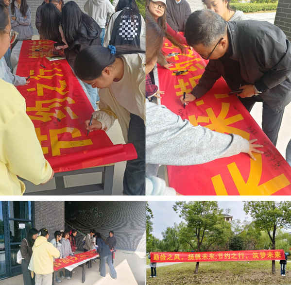 本次勤儉節約宣傳教育活動麵向全體在校學生,此次活動是讓每個學生在橫幅上簽字,讓橫幅並於食堂門口懸掛,強調勤儉節約的理念。活動現場氣氛熱烈,吸引眾多學生們的積極參與,提高同學們對勤儉節約重要性的認識,引導學生們樹立節約光榮、浪費可恥的社會價值觀。弘揚中華民族勤儉節約的優良傳統,促進社會主義核心價值觀的落地生根。鼓勵公眾將勤儉節約理念轉化為日常行為,形成勤儉節約的良好風尚,共同為可持續發展貢獻青春的力量,讓勤儉節約成為校園文化的重要組成部分。