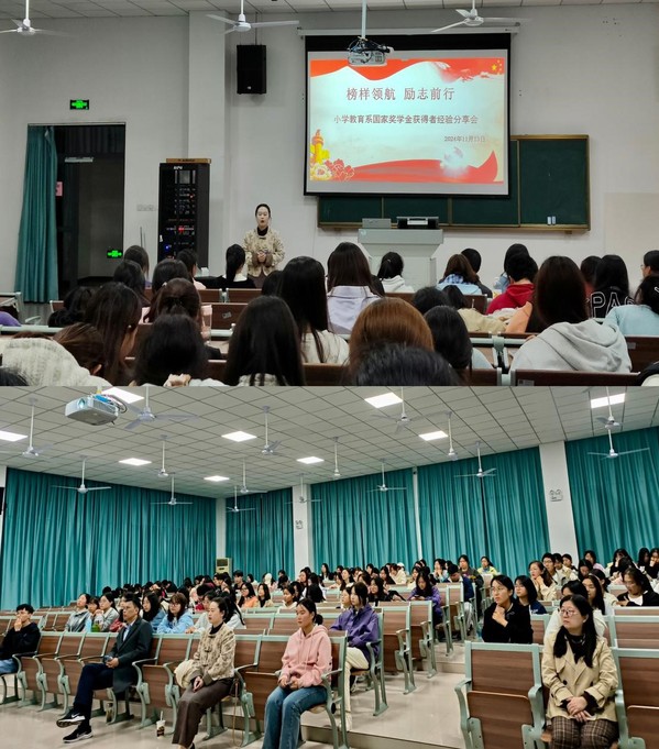 20241113日晚19:00點,小學教育係國家獎學金獲得者經驗分享會在以智樓報告廳開展。參加此次經驗分享會的成員有小學教育係24級新生和係團總支學生會成員。