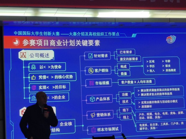 張強董事長在講座中,憑借其深厚的行業知識和豐富的實踐經驗,從多個維度對中國國際大學生創新大賽進行了深入剖析。他首先詳細解讀了大賽的規則和評分標準,強調了在創新項目中創新性、團隊協作、商業可行性等關鍵要素的重要性。為了讓師生們更好地理解,張強董事長還結合了大量過往大賽的優秀案例和實際數據,生動地展示了什麽樣的項目能夠在大賽中脫穎而出。