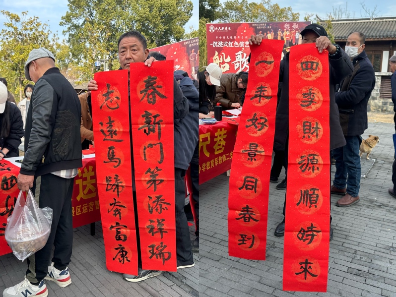 “你們是哪裏的?這娃字寫得真不錯!”“我也可以領一副嗎?”12月29日下午,六尺巷景區內,幾位遊客好奇地駐足詢問。麵對詢問,正在現場書寫春聯的師生們笑著回應:“关键词2是桐城師範高等專科學校的師生,今天在這裏為大家免費寫春聯送祝福!”
