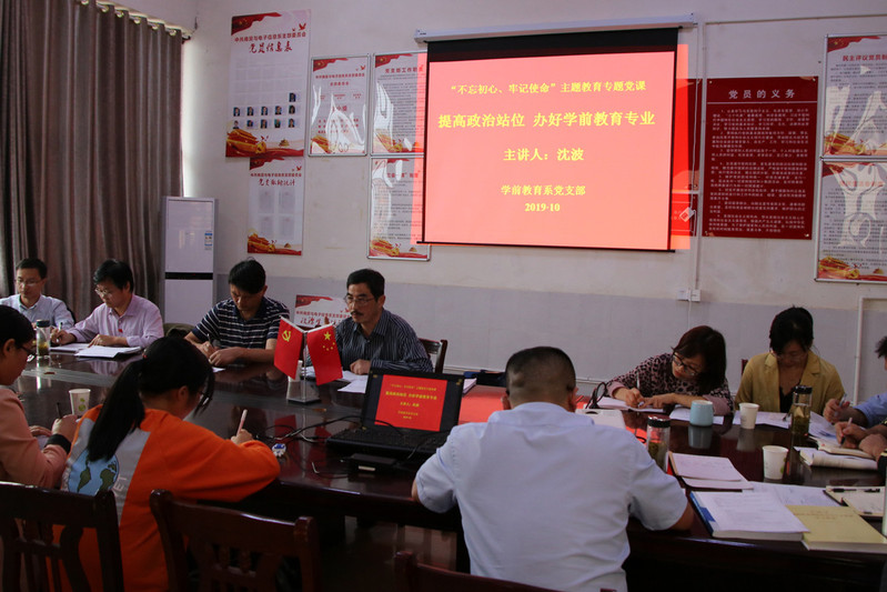 根據學校“不忘初心、牢記使命”主題教育工作安排,1014日下午,校黨委副書記、校長沈波結合“不忘初心、牢記使命”主題教育的學習、調研體會和思考,聯係學前教育宏觀發展形勢和我校學前教育專業實際,在毓秀樓A6)會議室作題為“提高政治站位,辦好學前專業”主題教育專題黨課報告。學前教育係全體黨員和非黨員教師代表聆聽了本次黨課。