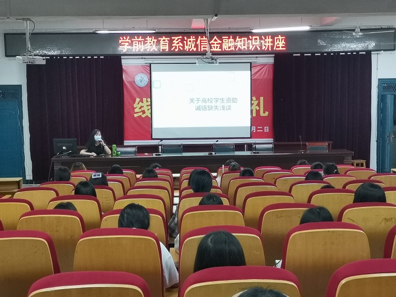 6月18日晚7點,我係誠邀我校商貿與電子信息係會計專業葛晶晶老師在以智樓一樓報告廳舉辦誠信金融知識專題報告會。我係輔導員、部分學生幹部和受資助學生參加了此次專題報告會。此次專題報告會由學前教育係黃學虎主任主持。