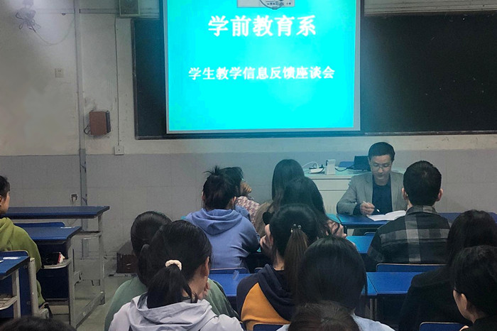 為進一步了解各年級學生學習狀況,有針對性地改進育人環境和水平,加強教風學風建設11月3日晚,我係在A405召開教學信息反饋學生座談會。學前教育係副主任曹杏田、教學秘書及各班級班幹及學生代表參加座談會。