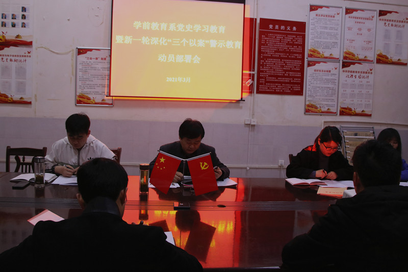 3月31日晚,學前教育係召開黨史學習教育暨新一輪深化“三個以案”警示教育動員部署會,會議由學前教育係黨支部書記程躍文主持,全體黨員和入黨積極分子參加會議。
