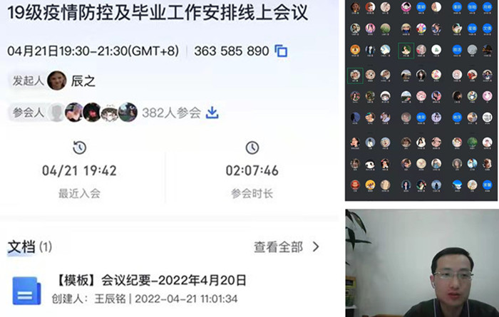 本次線上會議的順利開展,讓畢業班學生在疫情時期感受到同學的鼓勵、老師的關心和學校的關懷。對做好在外實習生全過程關注,保證疫情期間畢業生實習生安全與管理起到積極作用。(撰稿:王辰銘 審稿:曹杏田)