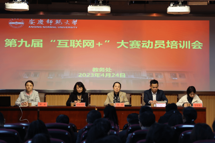4月24日,安慶師範大學在外國語學院503會議室舉行第九屆安慶師範大學“互聯網+”大學生創新創業大賽動員培訓會。校黨委常委、副校長吳瓊出席會議。我係王辰銘老師帶5名我校與安慶師範大學專升本聯合培養的學生參加本次培訓會。