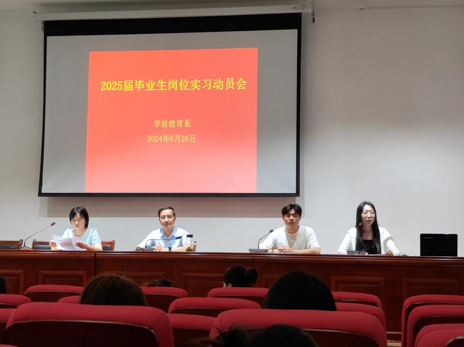 6月26日,高22級學前教育專業和早期教育專業全體學生齊聚其昶樓報告廳,分三批次參加崗位實習動員會。學前教育係主任曹杏田、副主任金丹萍及畢業班輔導員參加。