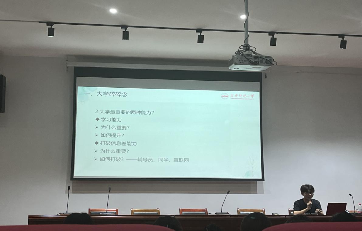 2024年10月18日,為了幫助本科班同學們更好地了解考研形勢,明確備考方向,學前教育係特舉辦了一場以“追夢研途,啟航未來”為主題的考研講座。此次講座由2024屆本科班畢業生湯德紅主講,目前湯德紅同學在安慶師範大學學前教育專業讀研。此次講座吸引了眾多有誌於深造的學子前來聆聽。