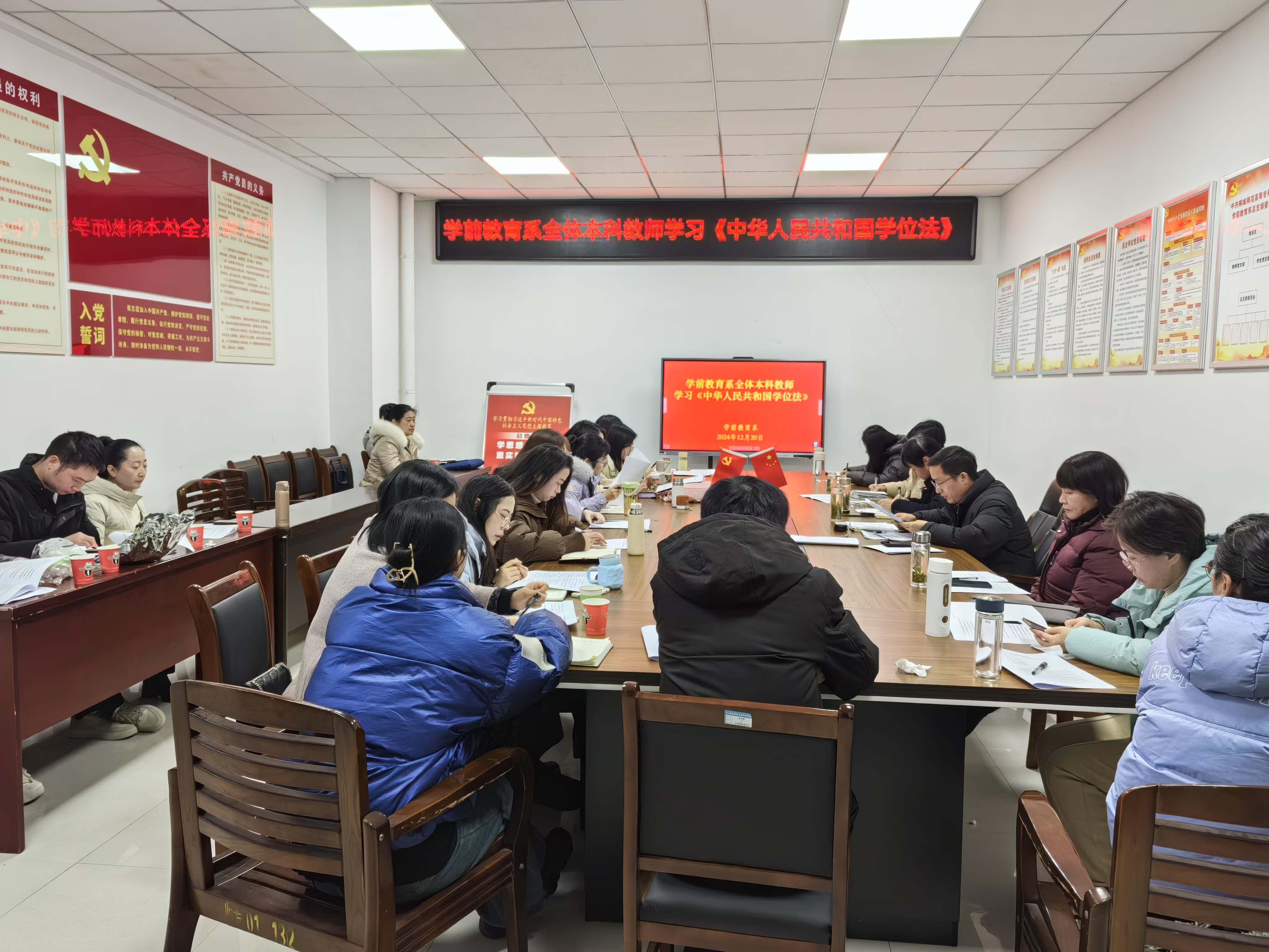 為進一步探索本科辦學有益經驗,保障學位質量,推動本科聯合辦學質量。12月20日,學前教育係組織全體教師學習《中華人民共和國學位法》(以下簡稱學位法),會議由總支書記程躍文主持。