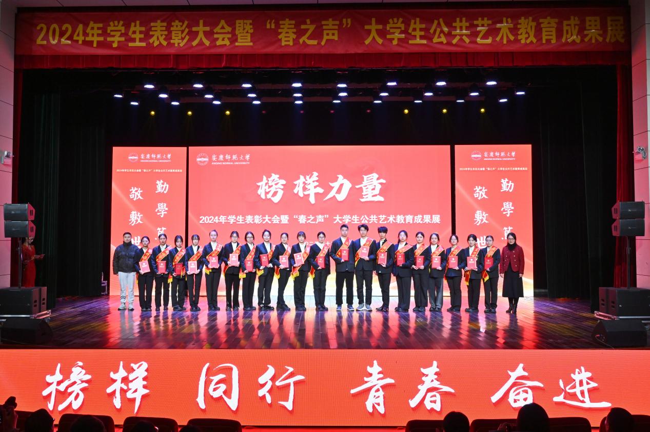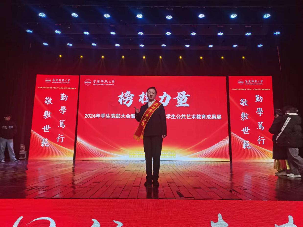 12月19日,安慶師範大學在龍山校區音樂廳舉行了2024年學生表彰大會暨“春之聲”大學生公共藝術教育成果展。23級本科班張睿同學作為我係專升本獲獎學生代表赴現場活動。